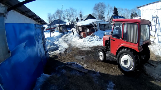 Работа морозным утром. Завожу сено в коровник Дёрни за верёвочку и она порвётся. Весна во дворе 2023_0324_091919
