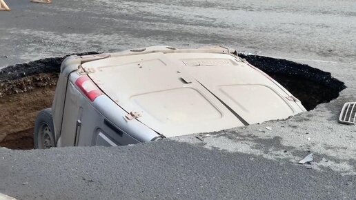 Пассажирская «Газель» полностью провалилась под асфальт на проезжей части в Перми