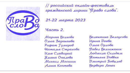 II российский онлайн-фестиваль гражданской лирики "Право слова". 21-22 марта 2023. Часть 2.