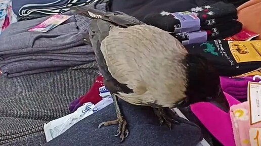 Пернатая бизнесменша: в Перми ворона торгует на рынке носками и пижамами