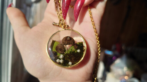 Залила милые поганочки эпоксидной смолой и получился отличный кулон
