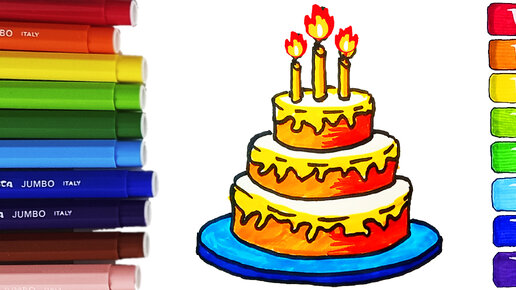 СМОТРИ !!! Круто нарисовал ТОРТ 3 ,Как нарисовать ТОРТ 3, Учись Рисовать, Рисуйте ТОРТ 3 МАРКЕРАМИ.