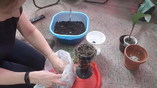 Дом в цветах. Пересадка. Аспидистра, орхидея и крестовник.