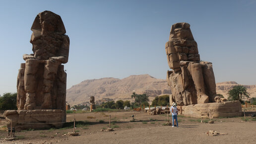 Уникальные артефакты Египта. Колоссы Мемнона в Луксоре. Гигантские каменные изваяния, раньше охраняли вход в храм фараона Аменхотепа III.