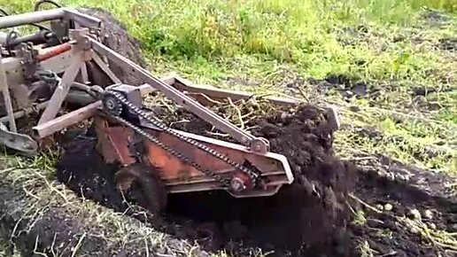 Самодельная картофелекопалка на слишком бльшой скорости и большоь заглублении