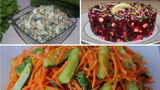 Три салата на каждый день, которые вам точно захочется повторить! Легкие, простые и без майонеза!