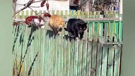 Эти смешные коты идут на какое-то очень важное дело