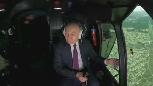 Путину дали испытать тренажёр вертолёта и полетать над городской застройкой