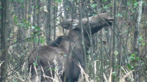 Лоси кормятся листьями ольхи. Звуки рева оленей