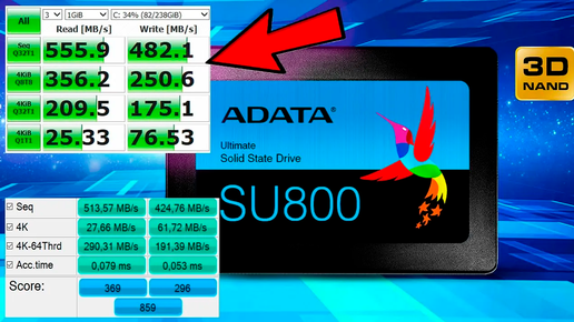 SSD диск ADATA SU800 ASU800SS 256GT C / Тест ssd adata su 800
