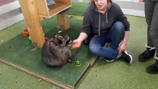 Енот выполняет команды хозяина