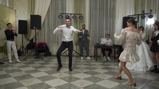 Командный танцевальный конкурс между гостями на свадебном праздничном вечере
