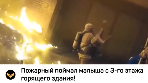Пожарный поймал малыша с 3-го этажа горящего здания