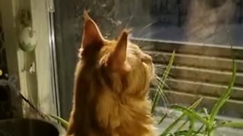 27 марта, зима не отступает, опять замело. Голодные зайцы сжирают все что находят. Мейн кун Бакс наблюдает. #мейнкун #котенок