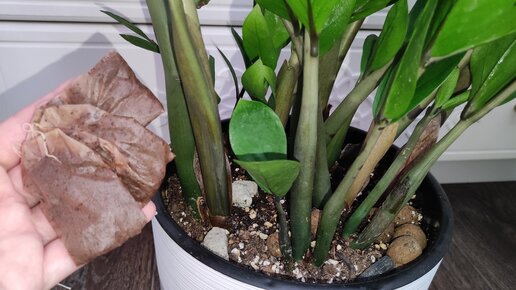 Не выбрасывайте это, я применяю для замиокулькаса и он наращивает крупный клубень и отличную корневую