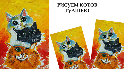 Как легко нарисовать котиков. Нарисуем кота гуашью. Нарисуем пушистых котов.