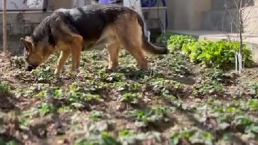 Весенняя прогулка по двору немецкой овчарки Дины.🤗