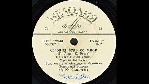 СЕГОДНЯ БУДЬ СО МНОЙ - Муслим Магомаев, вокальные квартеты «Аккорд» и «Улыбка»