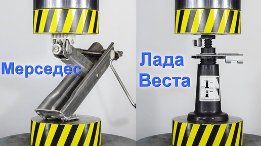 Проверяю какую нагрузку выдержит пластиковый домкрат от Весты, Nissan, Mercedes и Жигули под гидравлическим прессом