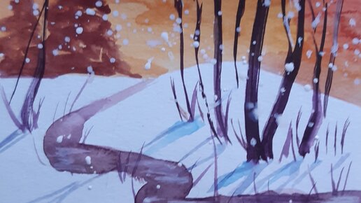 Опять снег. Зимняя композиция. Акварель. Автор Е. Сизова #акварель #живопись #пейзаж