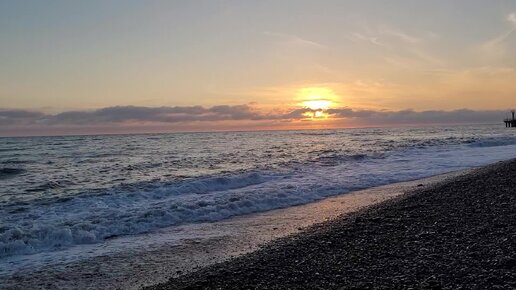 Удивительный закат! Солнышко в ладошках облаков. Красивый прибой. Релаксирующий шум моря...