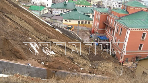 Оползень случился у Северной башни кремля, рядом со строящимся фуникулером