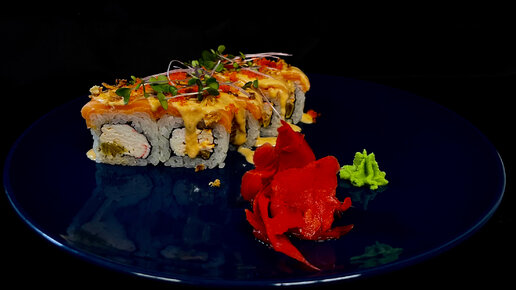 Огненный фьюжн: Ролл с лососем, крабом и апельсином под острым соусом❗️Приготовил ролл, с меню самого поппулярного заведения нашего города