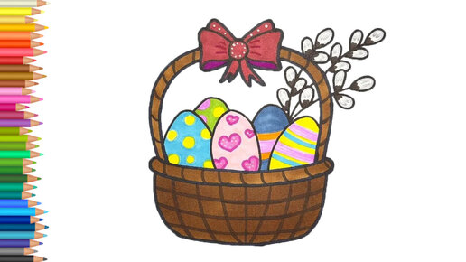 Рисунок на Пасху/Корзинка с пасхальными яйцами💖