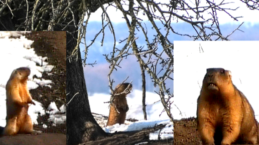 Сурки на снегу. Байбаки рано проснулись и устроили перекличку #сурок #байбак