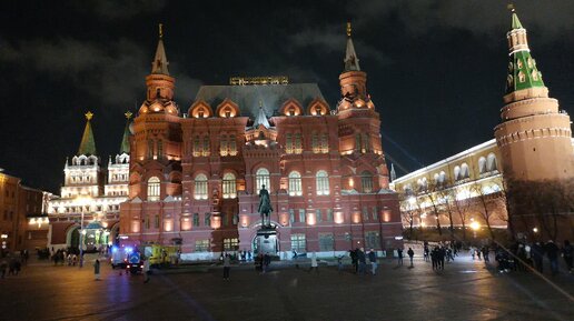 Вышли из охотного ряда. Направляемся к Красной площади. Огромный отель. Всадник на коне