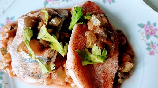 Буду готовить 2 блюда очень вкусных и полезных. Первое блюдо это Морской окунь с запеченными овощами.А второе блюдо куриная печень с соусом Муслин