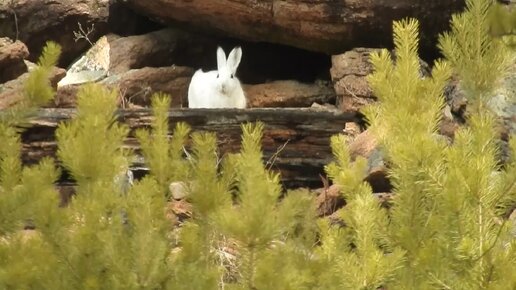 ЗАЯЦ БЕЛЯК ВЕСНОЙ ГРЕЕТСЯ В КАМНЯХ