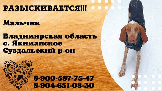 Пропала собака ! Мальчик , Владимирская область , с. Якиманское