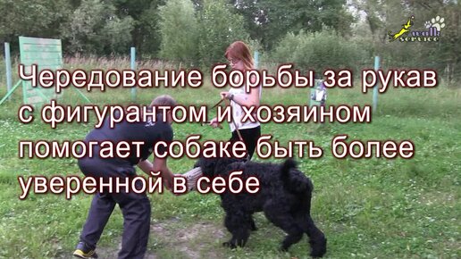 Дрессировка чёрных терьеров ЗКС 6, борьба за рукав с хозяином и фигурантом