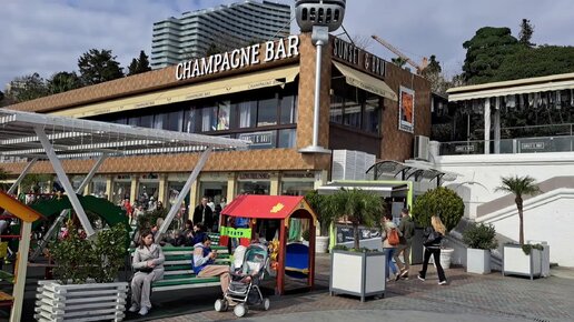 Набережная пляжа Приморский. Центр притяжения любителей поесть мидий.