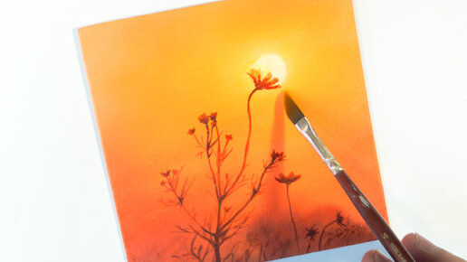 Как нарисовать цветок на закате. Картина акрилом