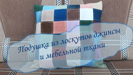 Подушка из остатков джинсы и мебельной ткани