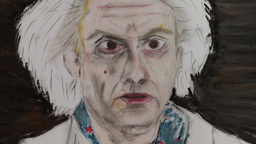 Док Браун. Рисунок пастелью на основе кадров фильма "Назад в будущее". Песня: " Johnny B. Goode" (Chuck Berry )