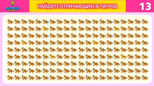 Тест на Альцгеймера! Найдите всех отличающихся тигров за 15 секунд