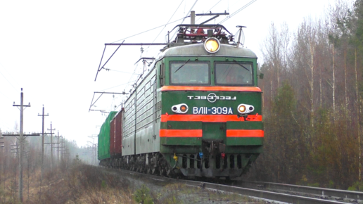 "Гибрид под дождём". ВЛ11-309 А/296 Б с небольшим грузовым поездом
