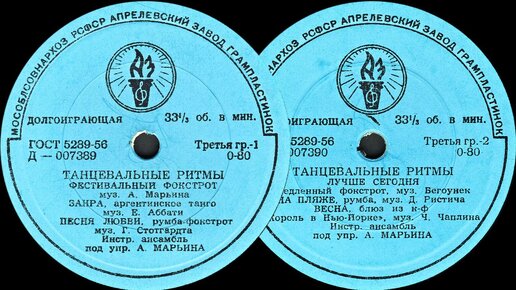 ТАНЦЕВАЛЬНЫЕ РИТМЫ - пластинка Миньон Д-007389-90