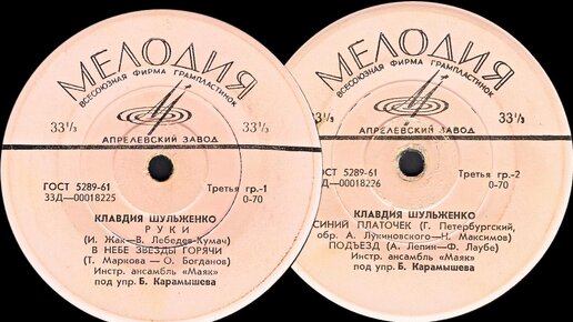 КЛАВДИЯ ШУЛЬЖЕНКО - пластинка Миньон 33Д-00018225-6