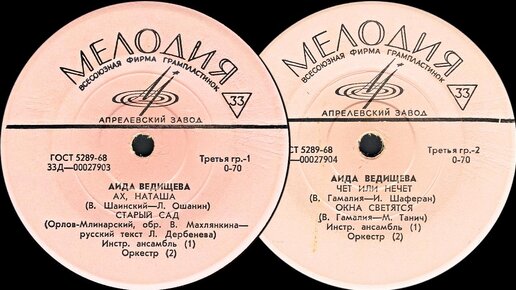 ПОЕТ АИДА ВЕДИЩЕВА - пластинка Миньон 33Д-00027903-4