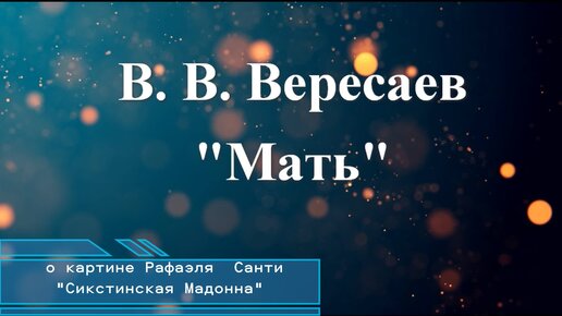 В.Вересаев о Сикстинской Мадонне. Аудиокнига Мать.