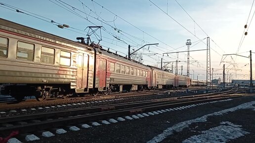 Отправление электропоезда ЭД9М-0037 сообщением Киров-Яр со станции Киров.
