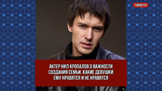 Актер Нил Кропалов о важности создания семьи. Какие девушки ему нравятся и не нравятся