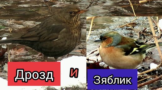 Дрозд и Зяблик. Что они делают в холодной луже