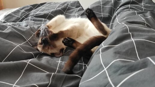Марта и мышка в моей кровати. Играет рядом со мной) чтобы мне не скучно было болеть 😃