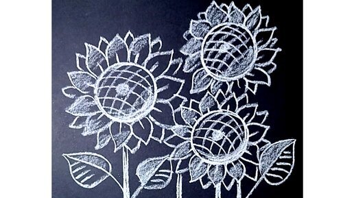 Как очень просто нарисовать подсолнухи меловым карандашом на черной бумаге.