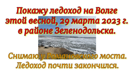 Покажу ледоход на Волге этой весной, 29 марта 2023 г. в районе Зеленодольска. Снимаю у Романовского моста. Ледоход почти закончился.